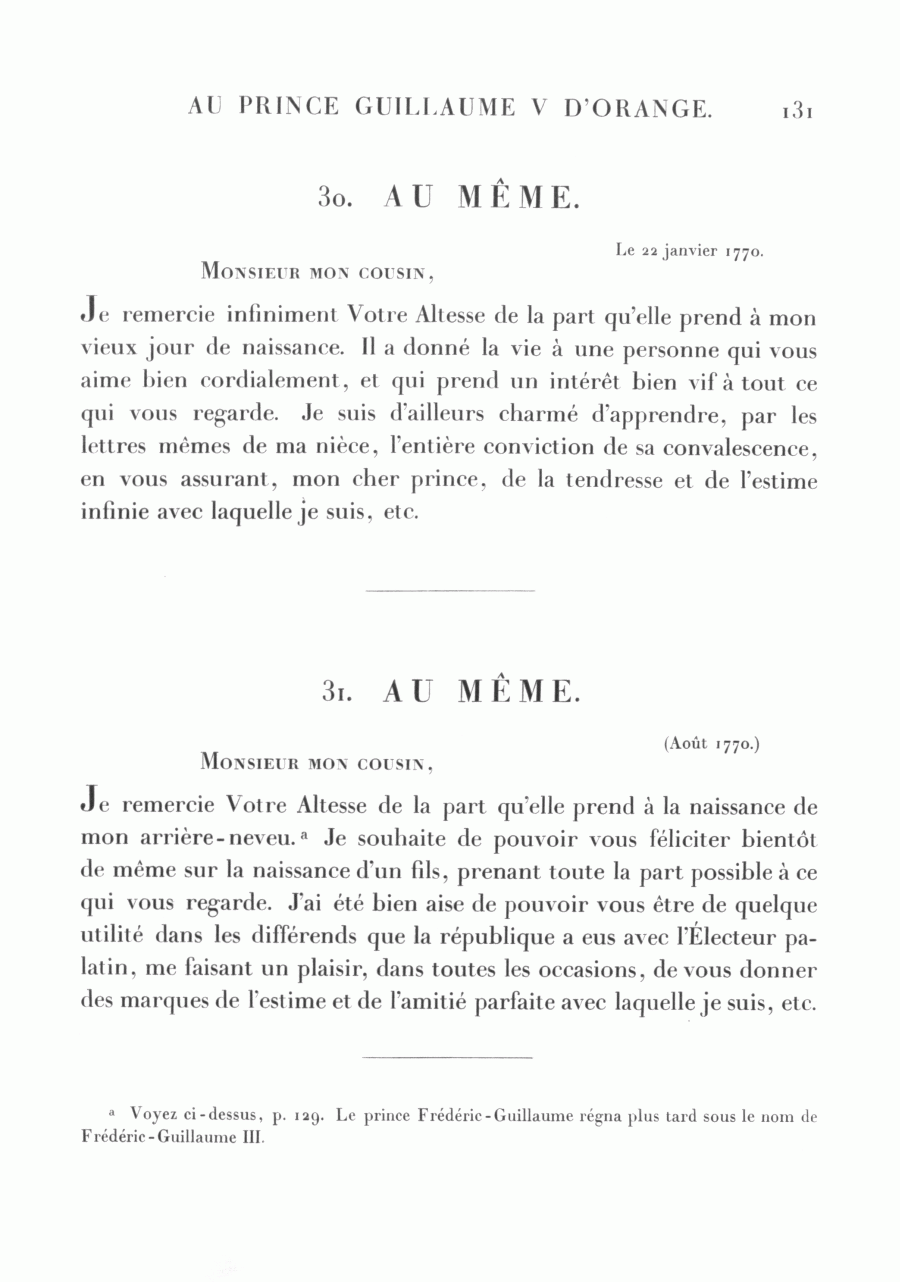 a Voyez ci-dessus, p. 129. Le prince Frédéric-Guillaume régna plus tard sous le nom de Frédéric-Guillaume III.