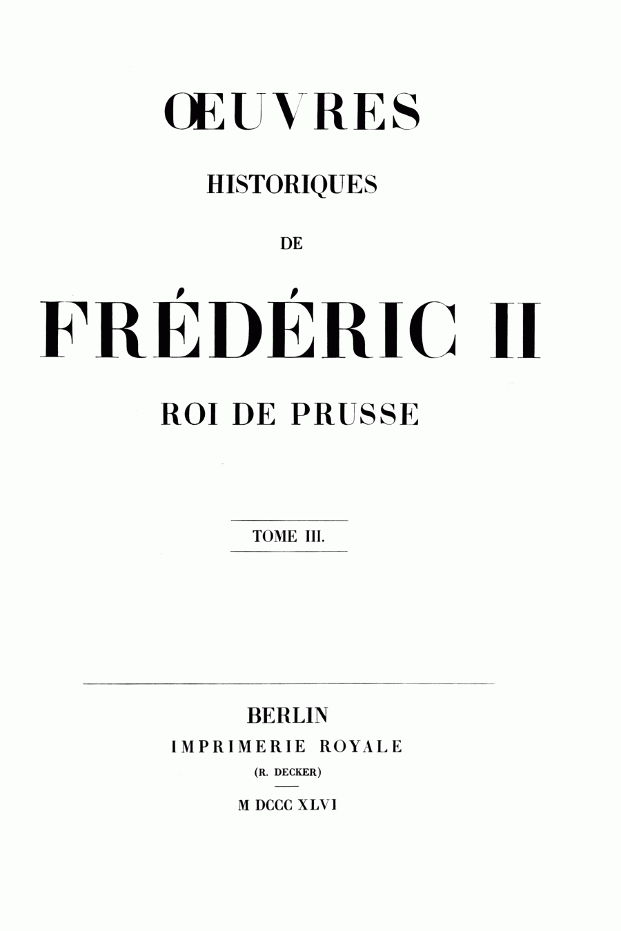 ŒUVRES HISTORIQUES DE FRÉDÉRIC II ROI DE PRUSSE TOME III.