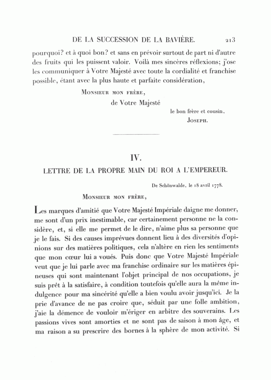 IV. LETTRE DE LA PROPRE MAIN DU ROI A L'EMPEREUR.