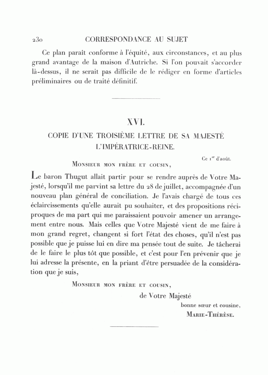 XVI. COPIE D'UNE TROISIÈME LETTRE DE SA MAJESTÉ L'IMPÉRATRICE-REINE.