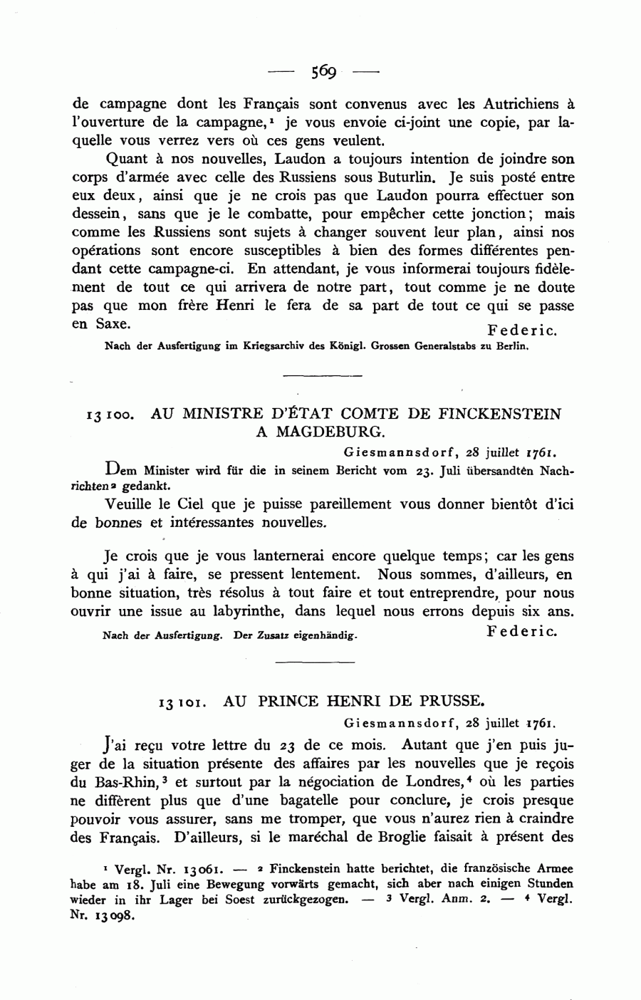 13100. Au ministre d'État comte de Finckenstein à Magdeburg