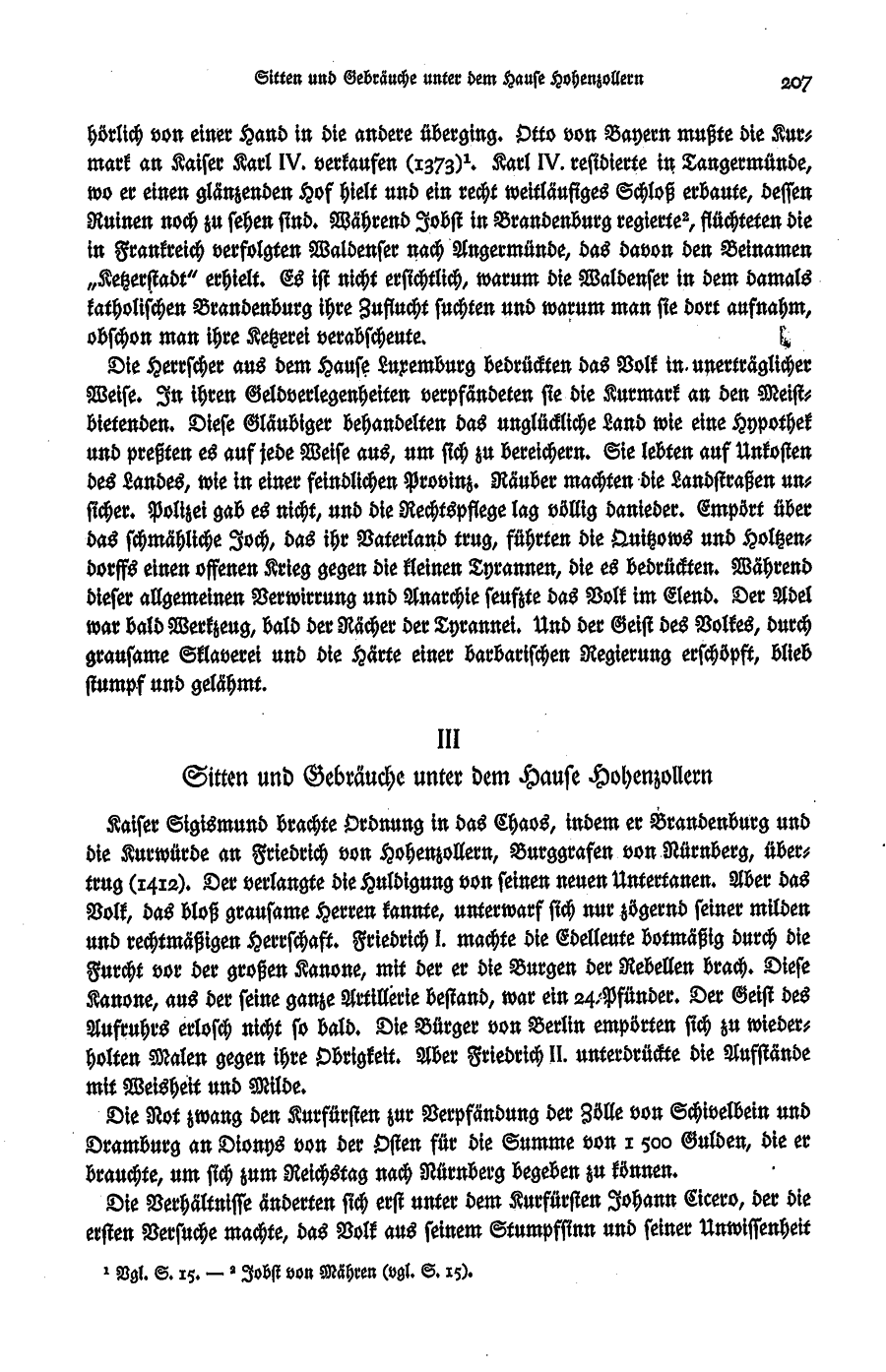 III. Sitten und Gebräuche unter dem Hause Hohenzollern