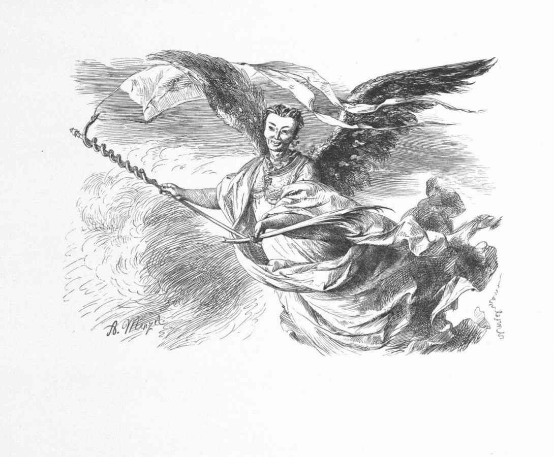 27. L'hypocrisie de la paix, planant dans les airs. (Chap. II de l'„Histoire de la guerre de Sept ans“. - Gravure d'Unzelmann.)