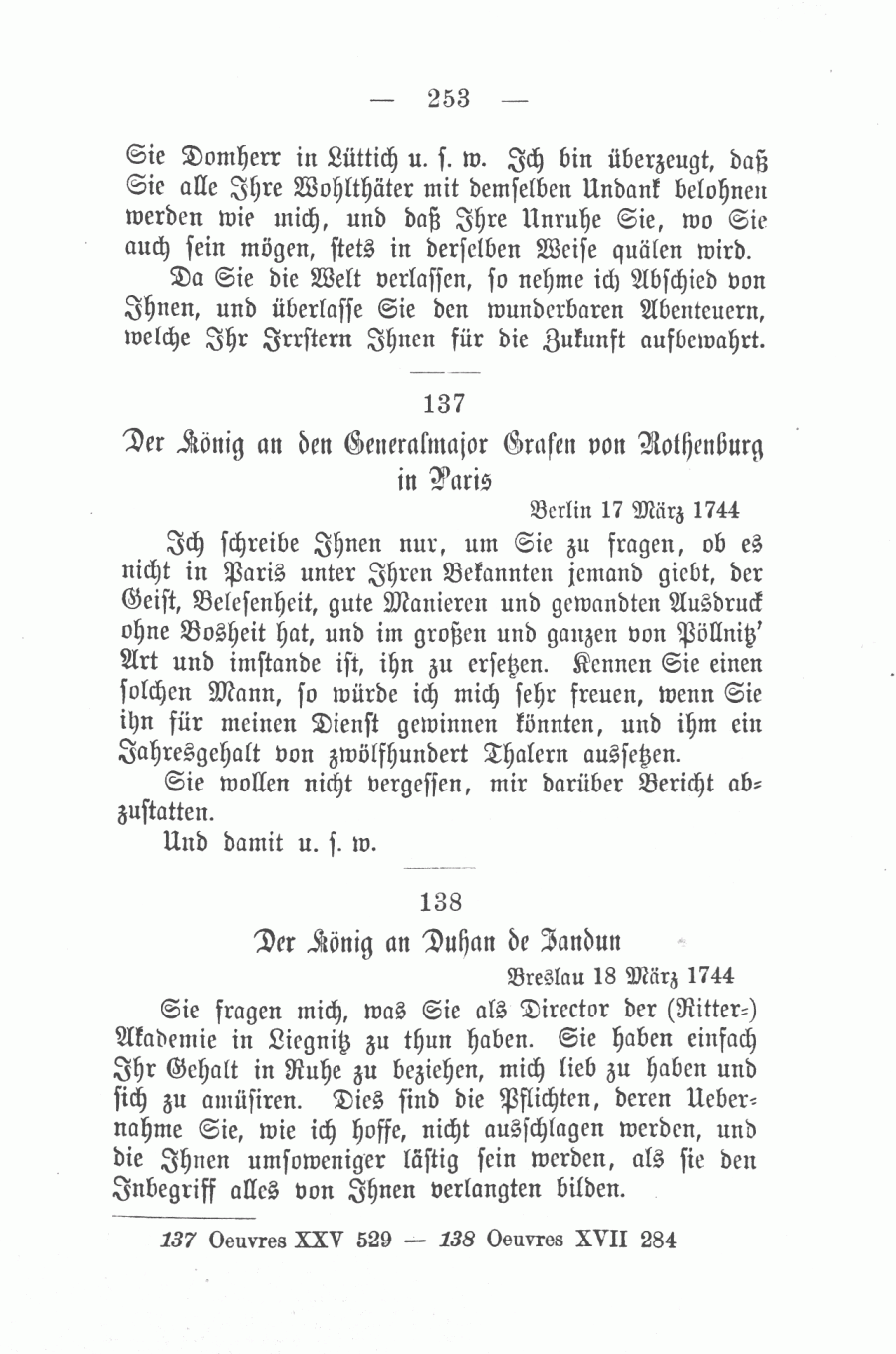 Der König an den Grafen Rothenburg 17 März 1744