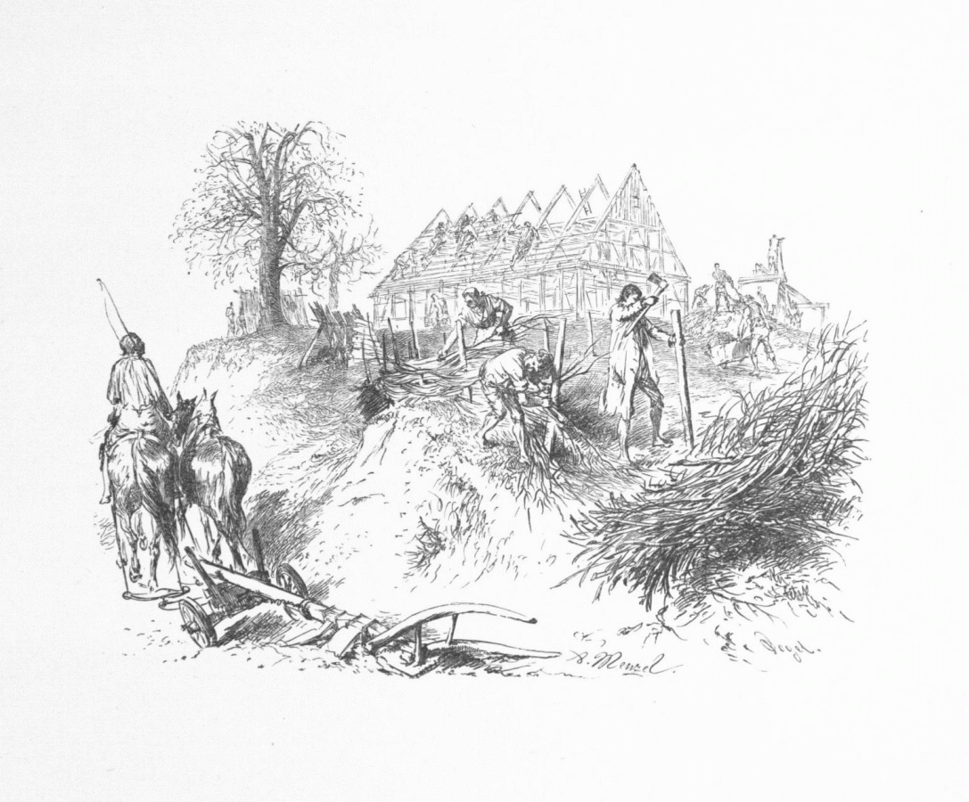 44. Reprise des travaux de la paix dans le royaume. (Gravure d'O. Vogel.)