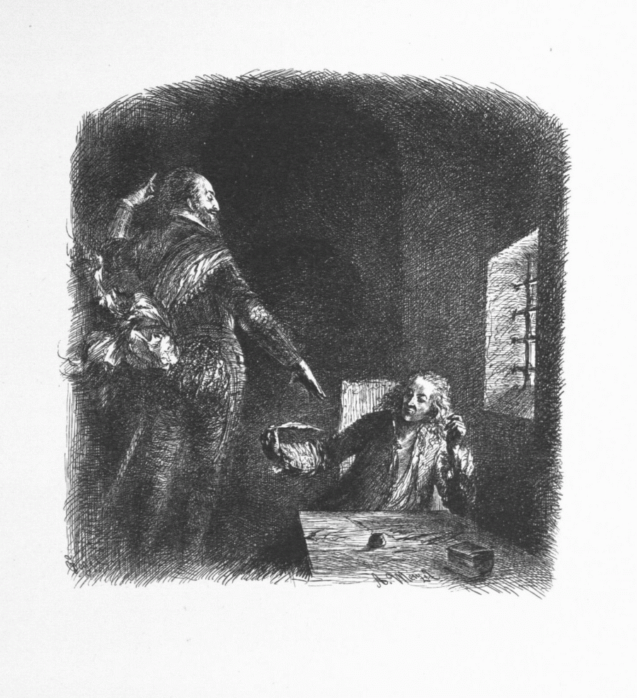 Dem im Kerker an seiner Henriade arbeitenden Voltaire erscheint der Geist Heinrichs IV. von Frankreich.