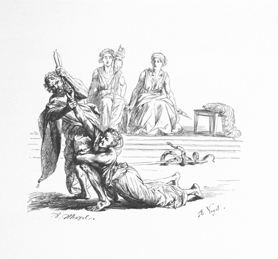 179. Esculape et les trois parques. (Gravure d'A. Vogel.)