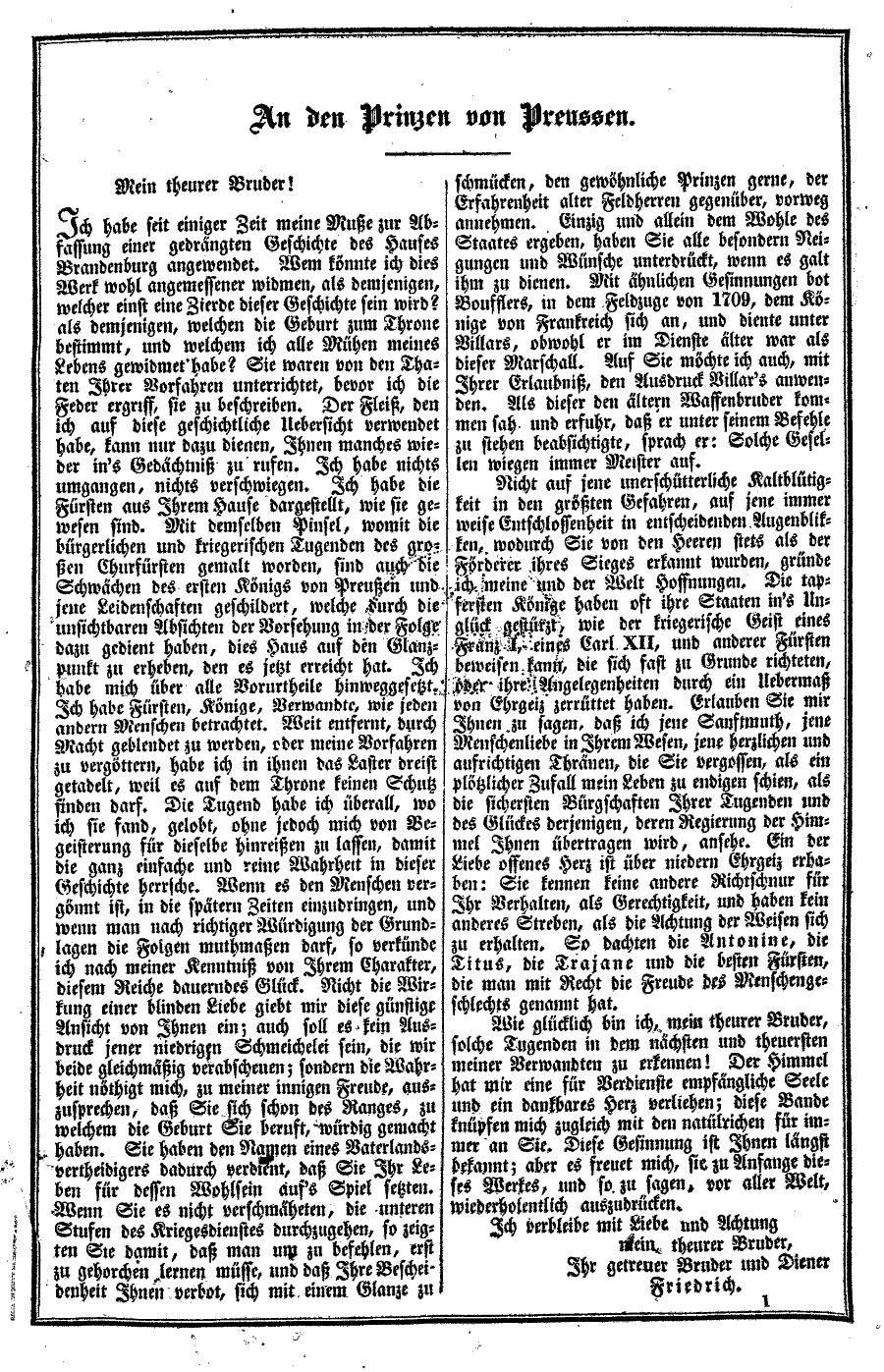 Brief des Königs an den Prinzen von Preußen
