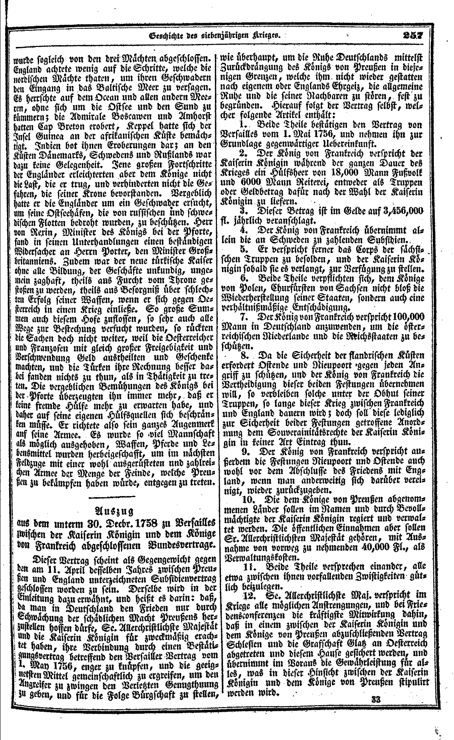 Auszug aus dem unterm 30. Dezember 1758 zu Versailles abgeschlossenen Bundesvertrag
