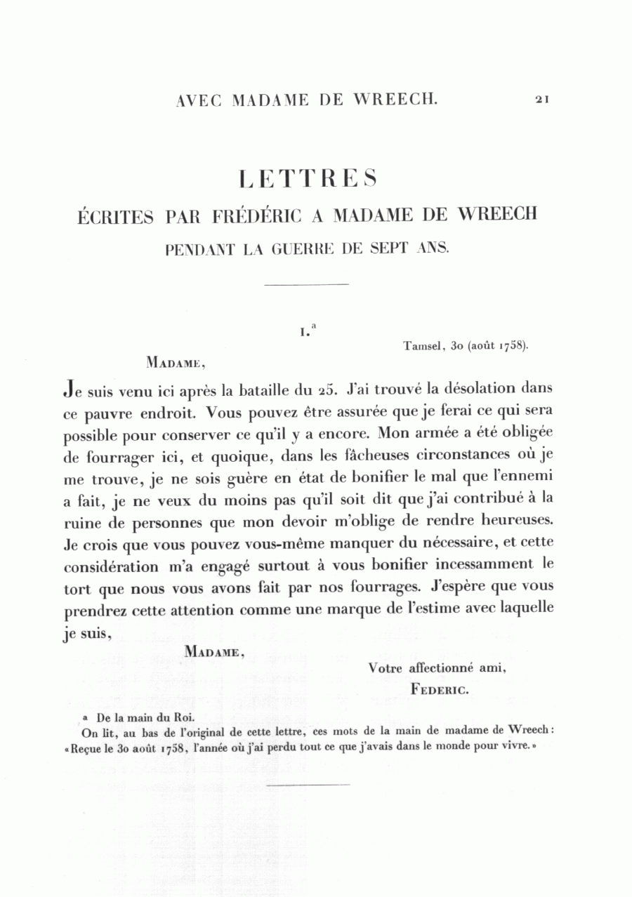 Frédéric à madame de Wreech, Tamsel, 30 (août 1758)Id: d385_ag509-16_003009000