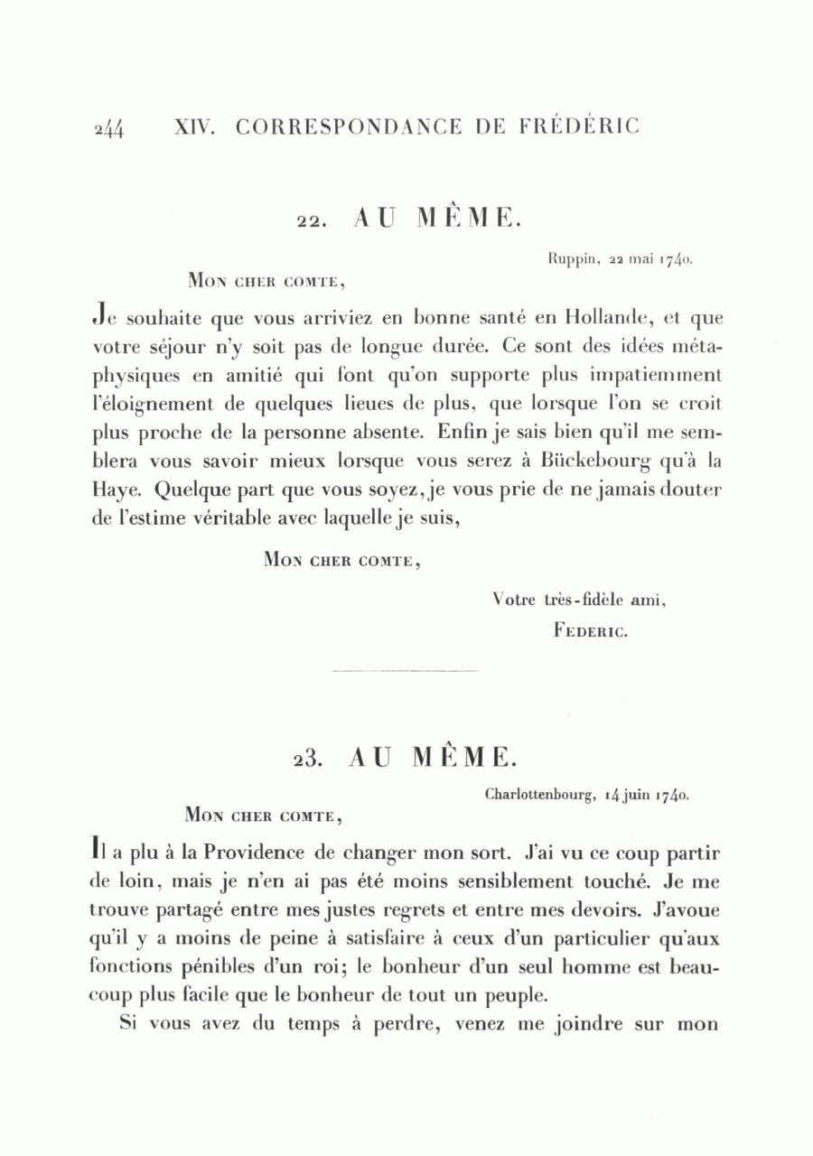 Correspondance de Frédéric avec le comte de Schaumbourg-Lippe