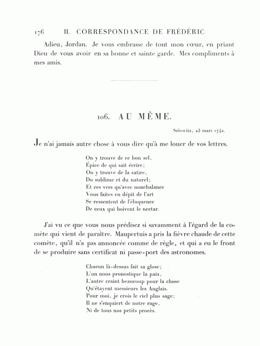 Frédéric à M. Jordan, Selowitz, 23 mars 1742Id: d385_ag509-17_003106000