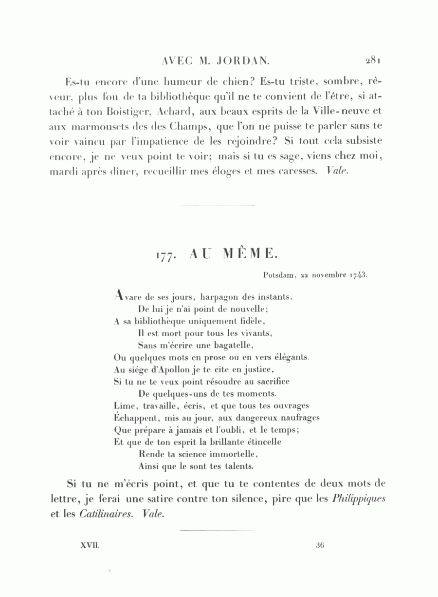 Frédéric à M. Jordan, Potsdam, 22 novembre 1743Id: d385_ag509-17_003177000