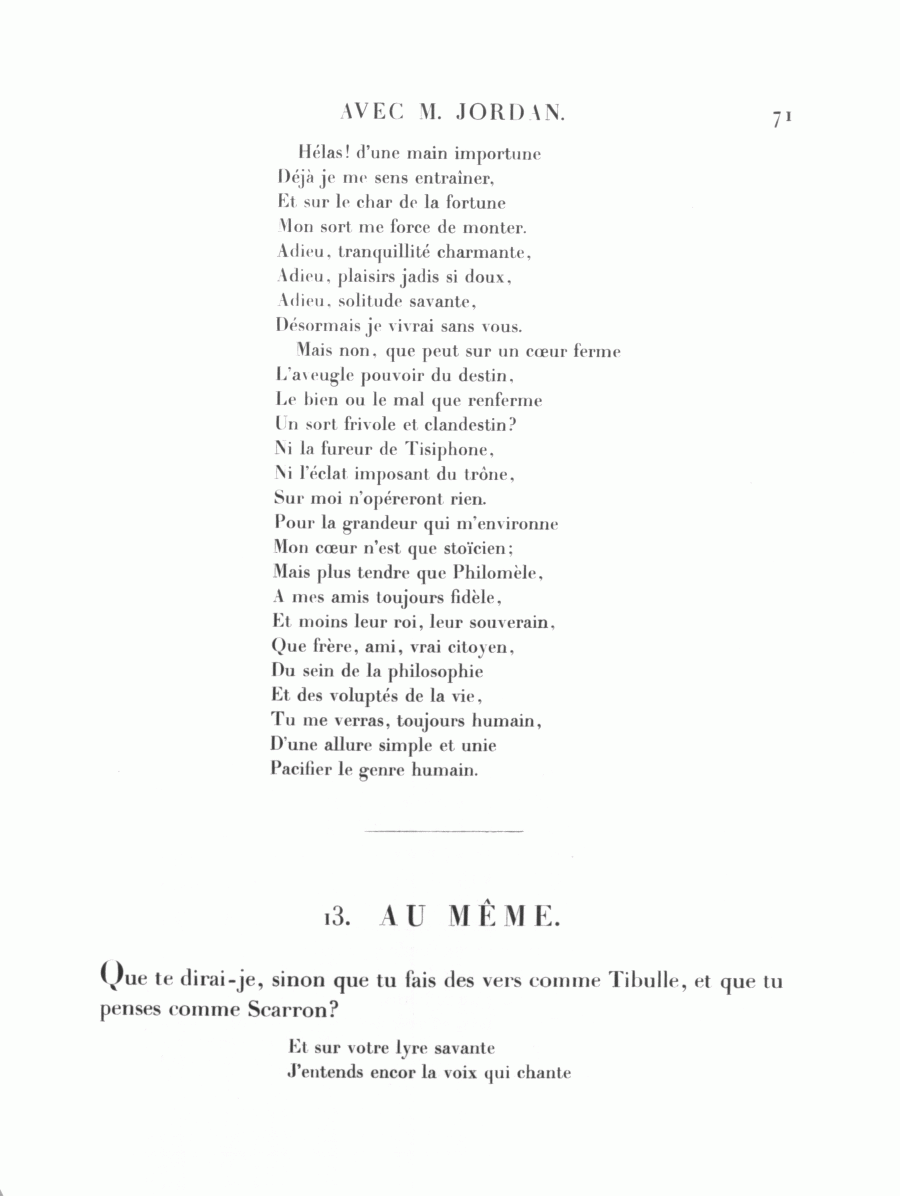 Que te dirai-je, sinon que tu fais des vers comme Tibulle, et que tu penses comme Scarron?