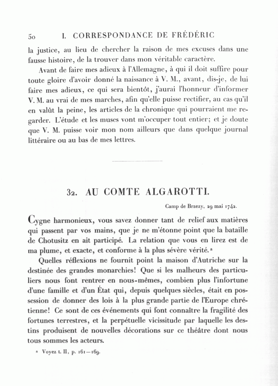 Frédéric au comte Algarotti, Camp de Brzezy, 29 mai 1742Id: d385_ag509-18_002032000