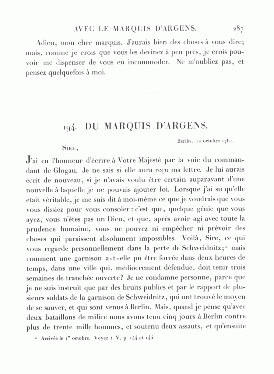 Le marquis d'Argens à Frédéric, Berlin, 12 octobre 1761Id: d385_ag509-19_002194000