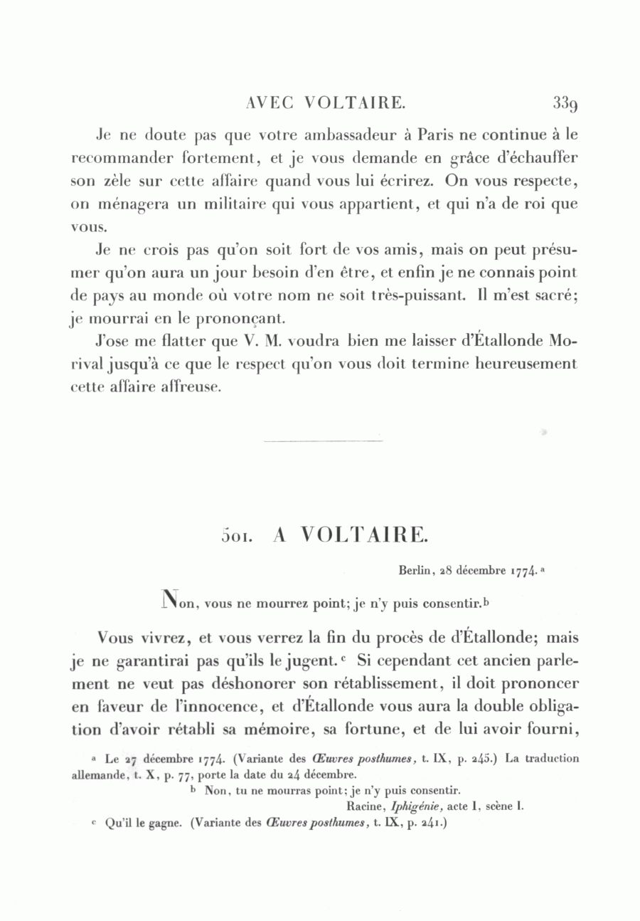 Frédéric à Voltaire, Berlin, 28 (27) décembre 1774Id: d385_ag509-23_001171000