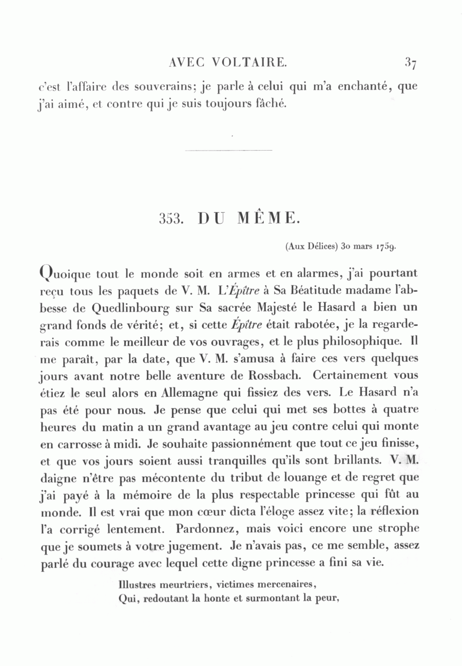Voltaire à Frédéric, (aux Délices), 30 mars 1759Id: d385_ag509-23_001023000