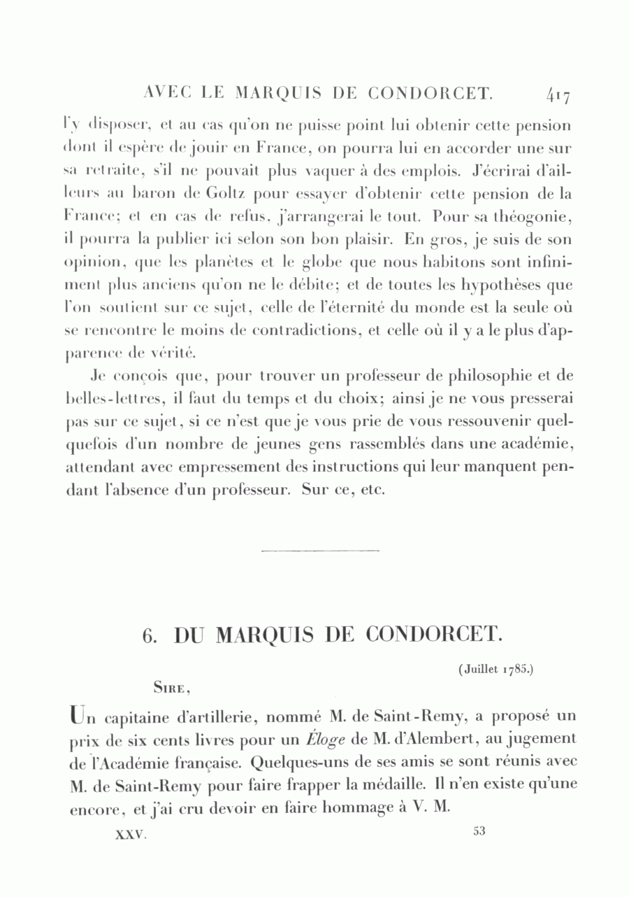 Le marquis de Condorcet à Frédéric, (juillet 1785)