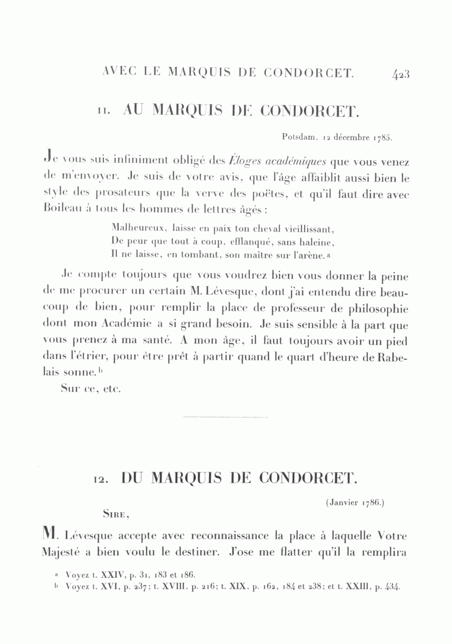 Le marquis de Condorcet à Frédéric, (janvier 1786)