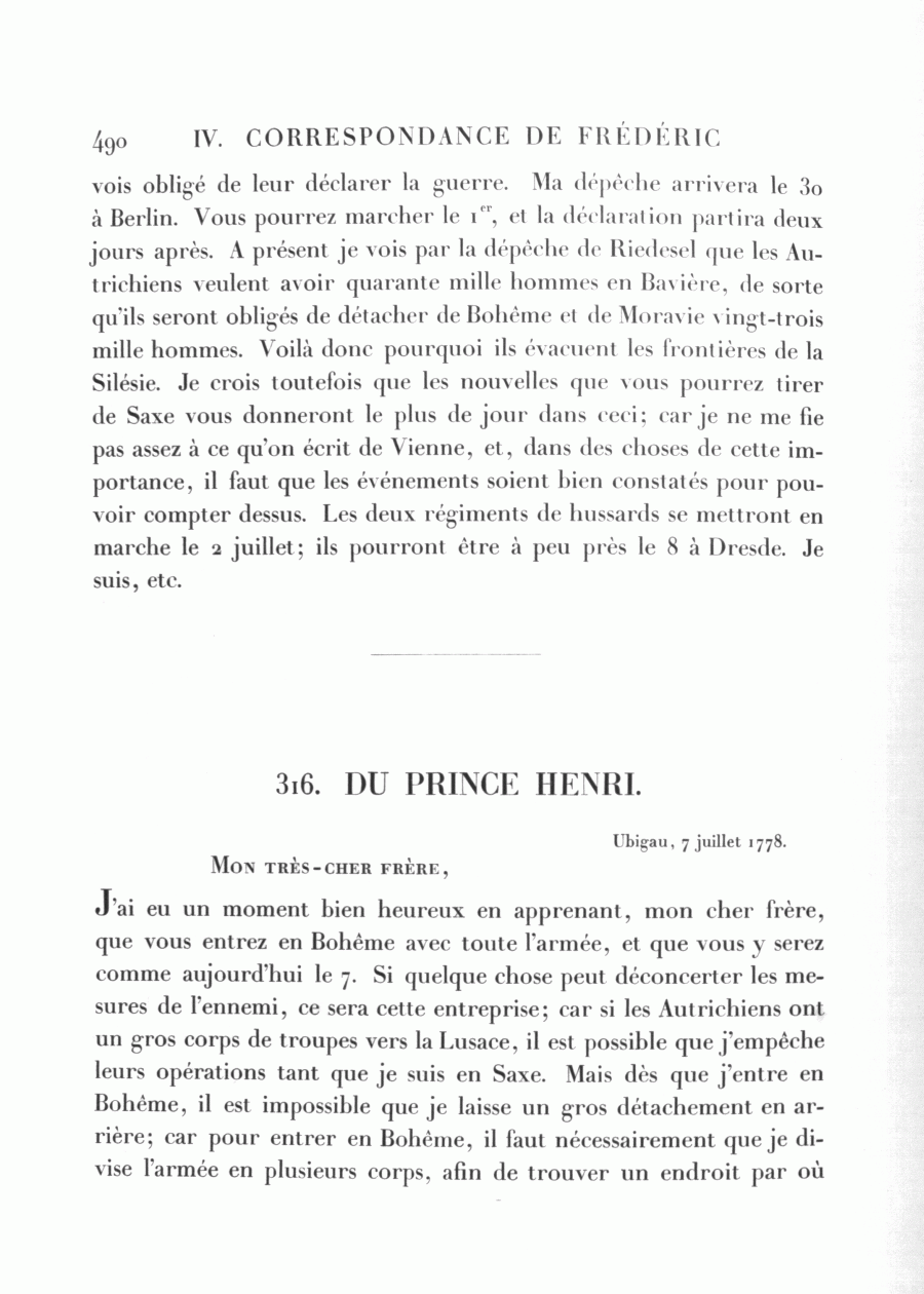 Le prince Henri à Frédéric, Ubigau, 7 juillet 1778Id: d385_ag509-26_005316000