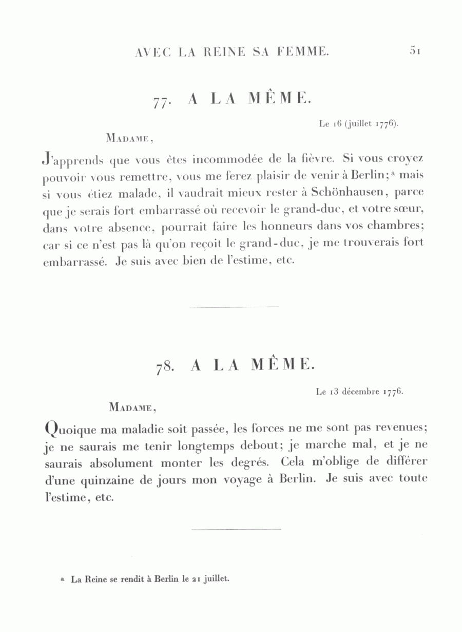Correspondance de Frédéric avec la Reine Élisabeth sa femme