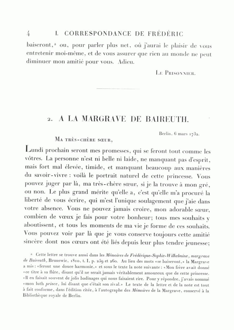 Correspondance de Frédéric avec sa sœur Wilhelmine, margrave de Baireuth
