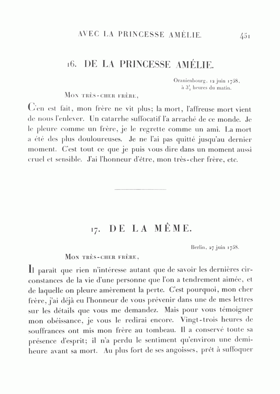 Correspondance de Frédéric avec sa sœur Amélie, abbesse de Quedlinbourg