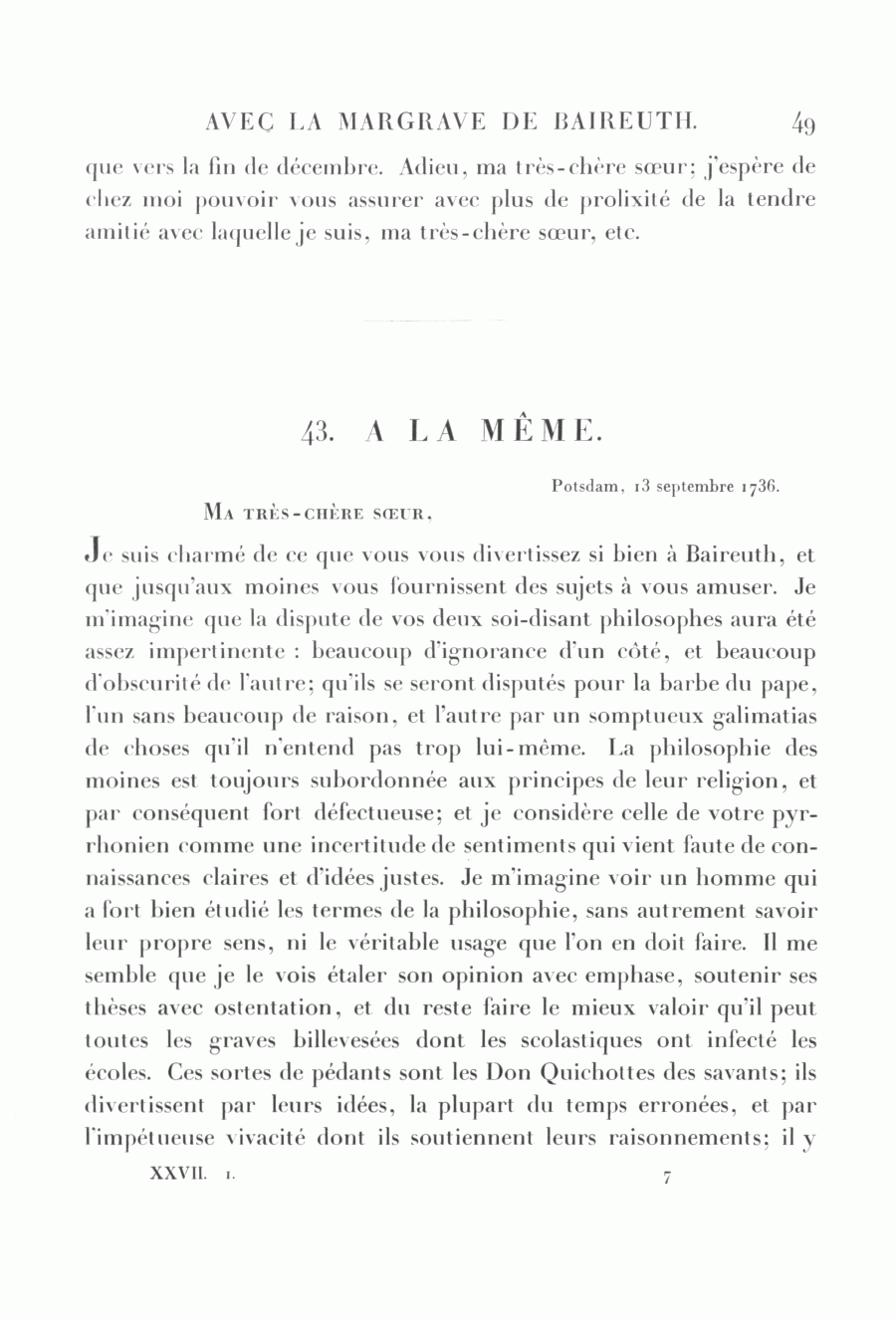 Frédéric à la margrave de Baireuth, Potsdam, 13 septembre 1736Id: d385_ag509-27_1_002043000
