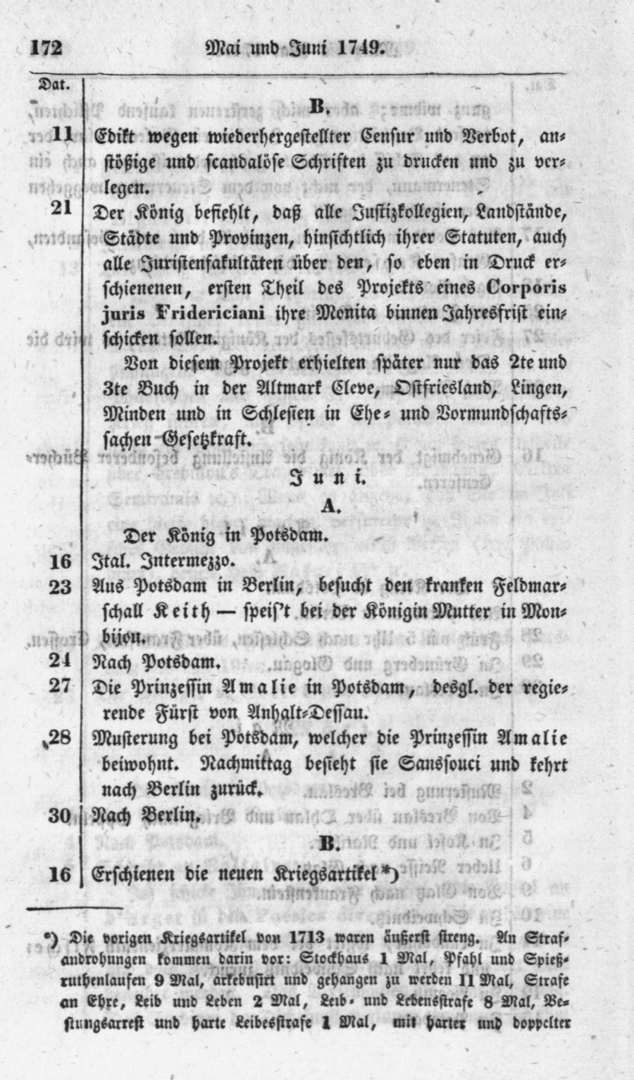 Karl Heinrich Siegfried Rödenbeck: Tagebuch oder Geschichtskalender aus Friedrich's des Großen Regentenleben (1740 - 1786). Bd. 1