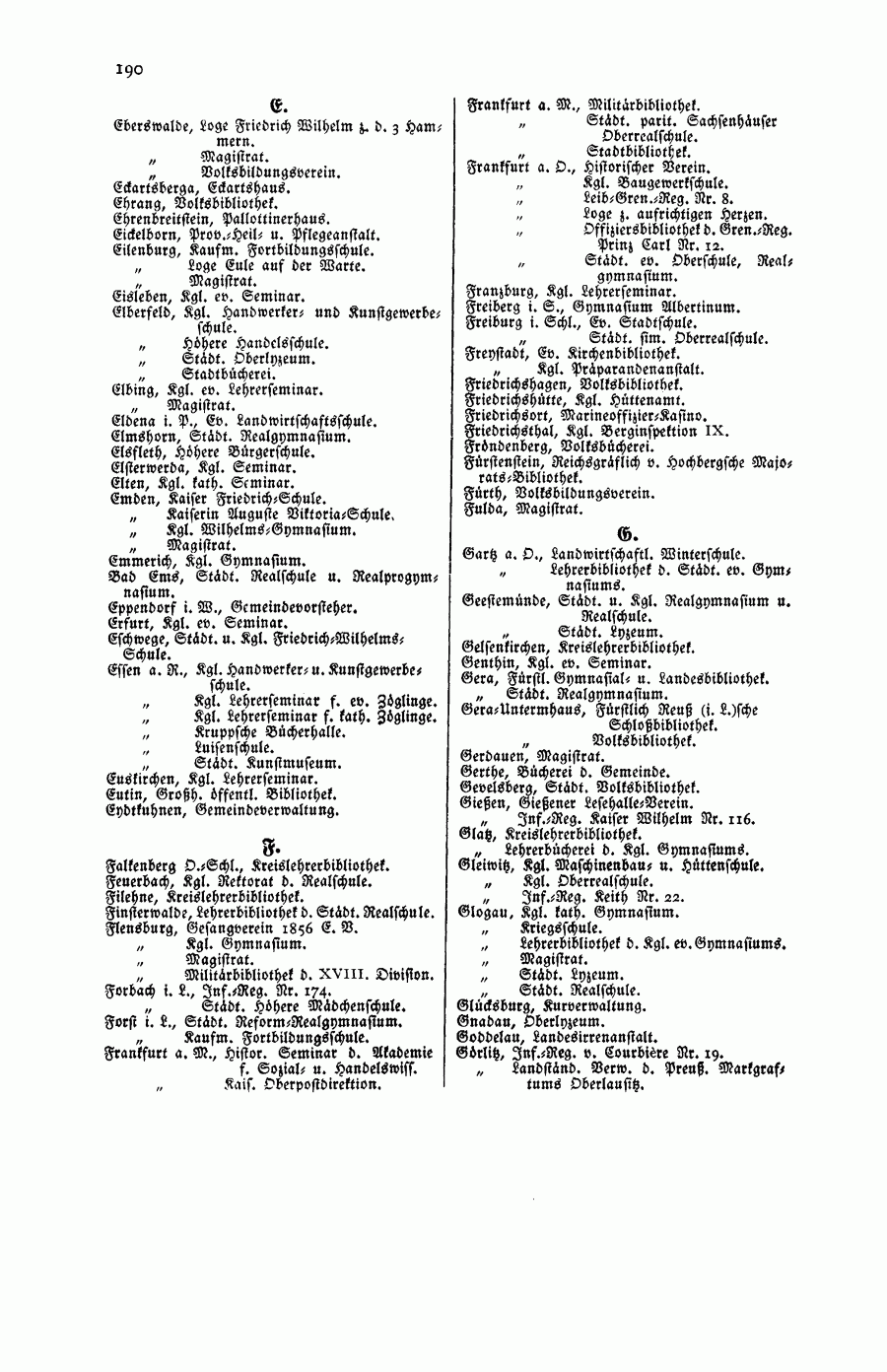 - Frankfurt a. O., Offiziersbibliothek d. Gren.-Reg. Prinz Carl Nr. 12.
