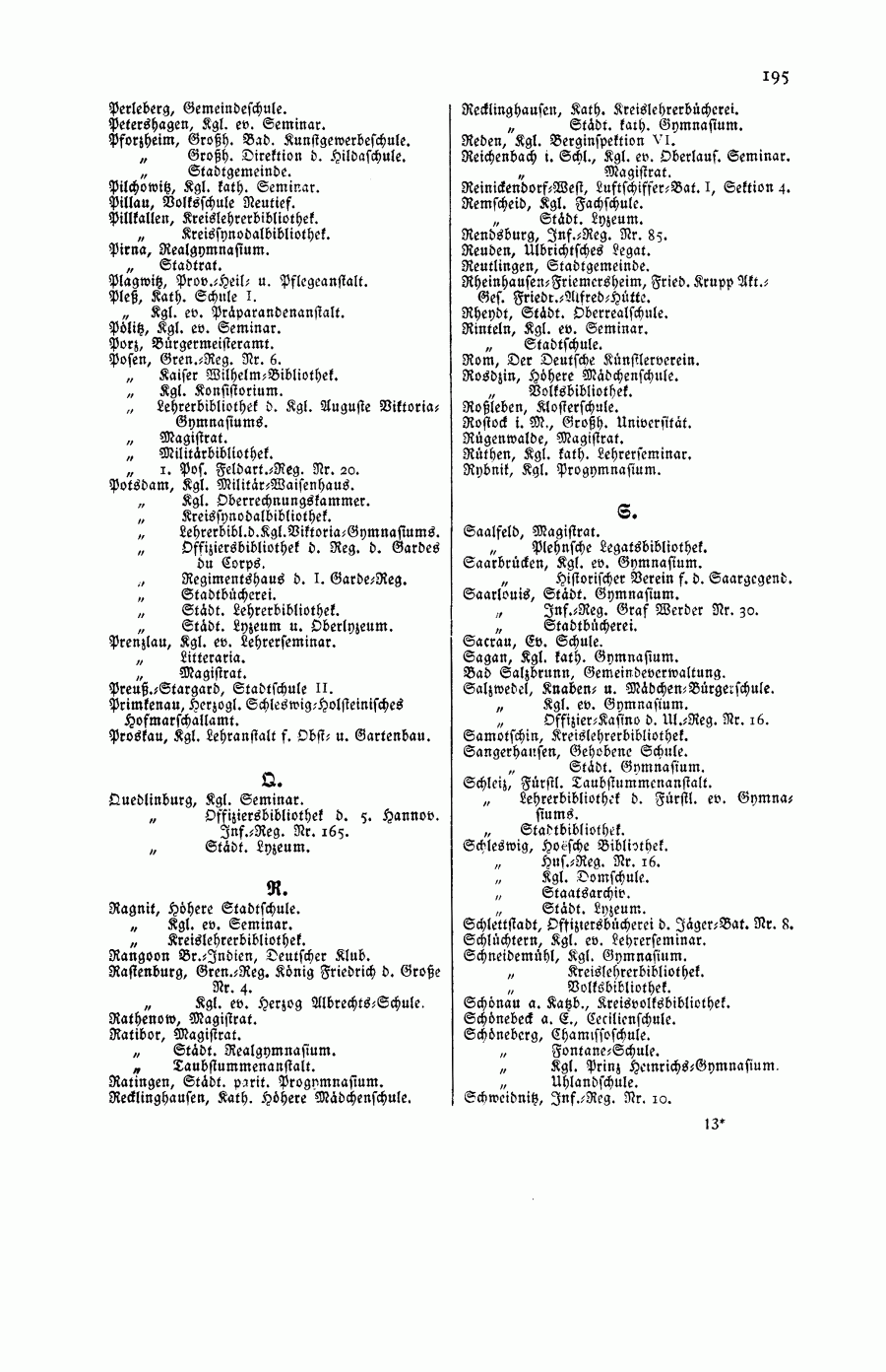 - Schleiz, Lehrerbibliothek d. Fürstl. ev. Gymnasiums.