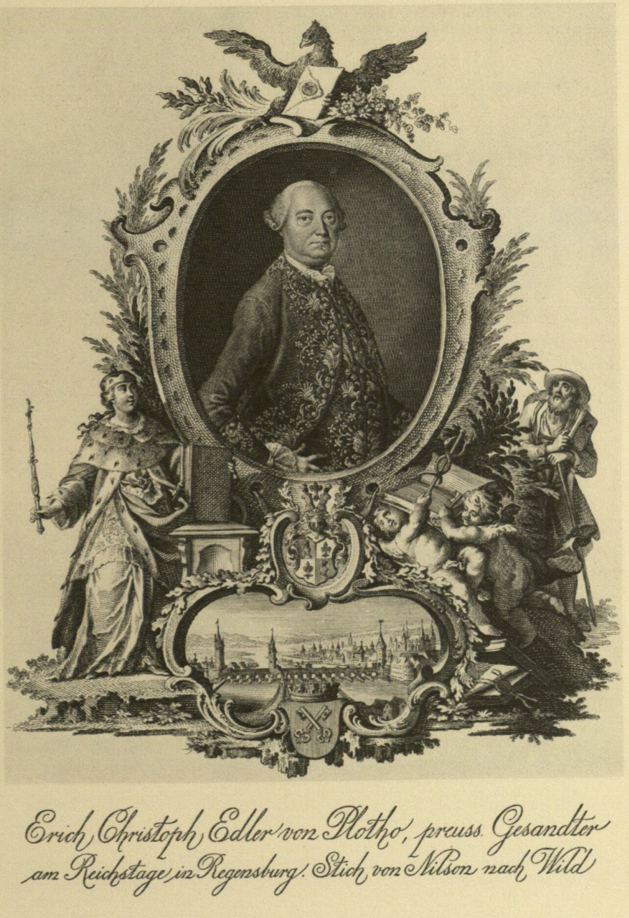 Erich Christoph Edler von Plotho, preußischer Gesandter am Reichstage in Regensburg. Stich von Nilson nach Wild.