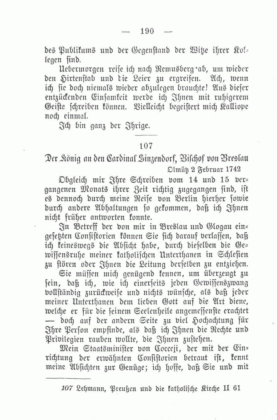 Der König an den Cardinal Sinzendorf 2 Febr. 1742