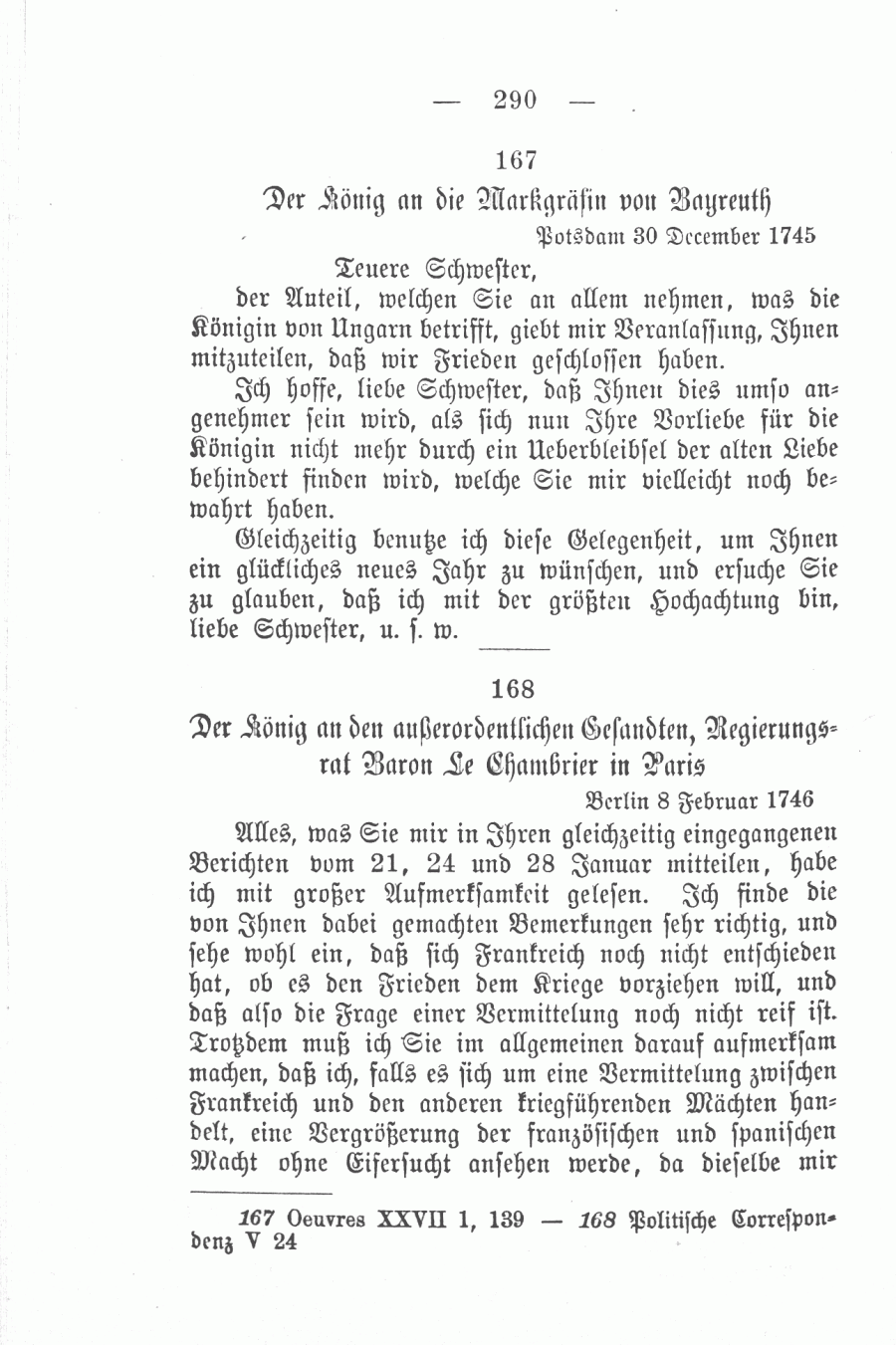 Der König an den Gesandten Le Chambrier in Paris 8 Febr. 1746