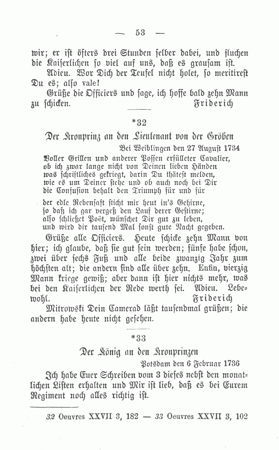 Der Kronprinz an den Lieutenant von der Gröben 27 Aug. 1734