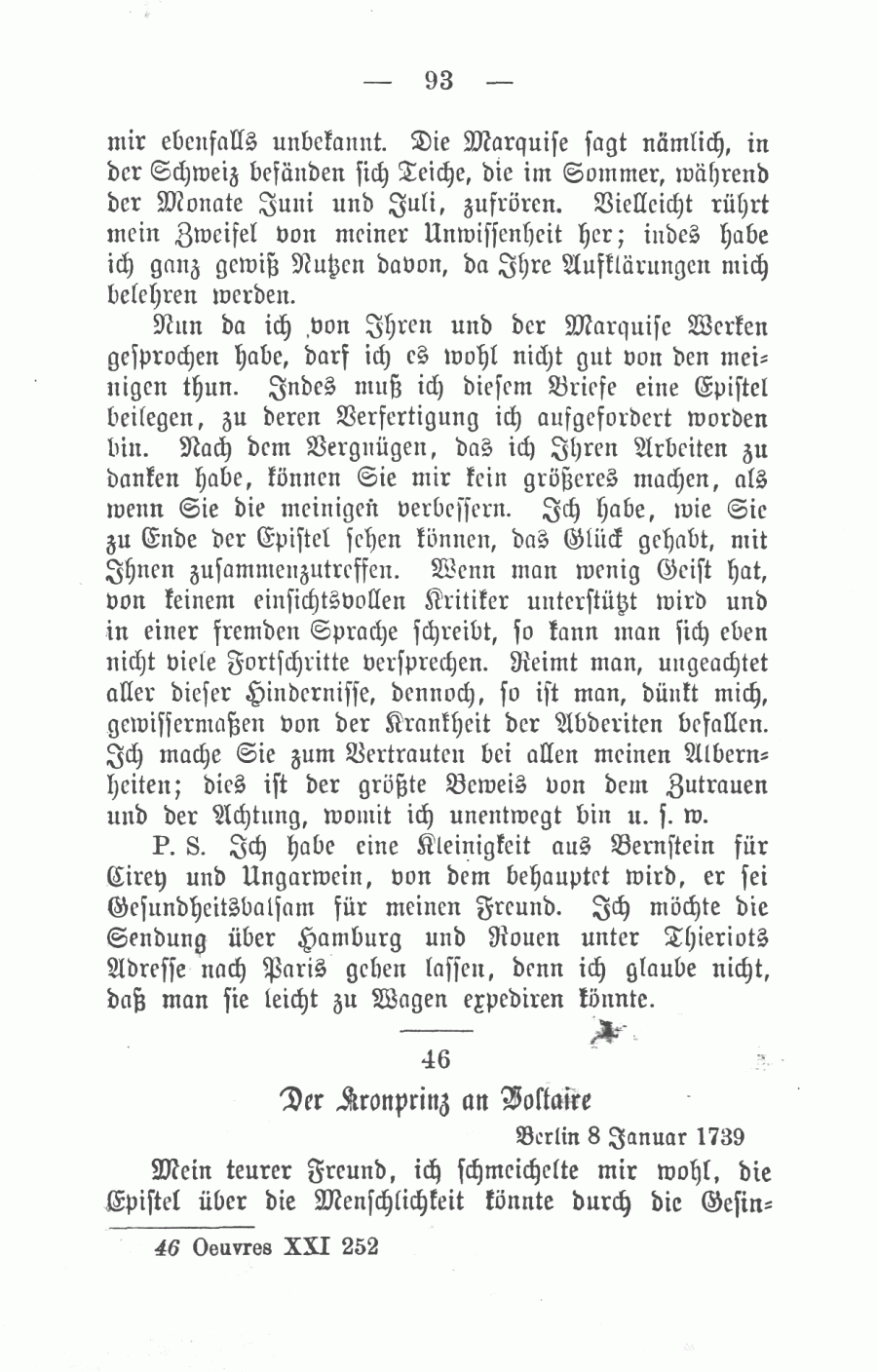 Der Kronprinz an Voltaire 8 Jan. 1739