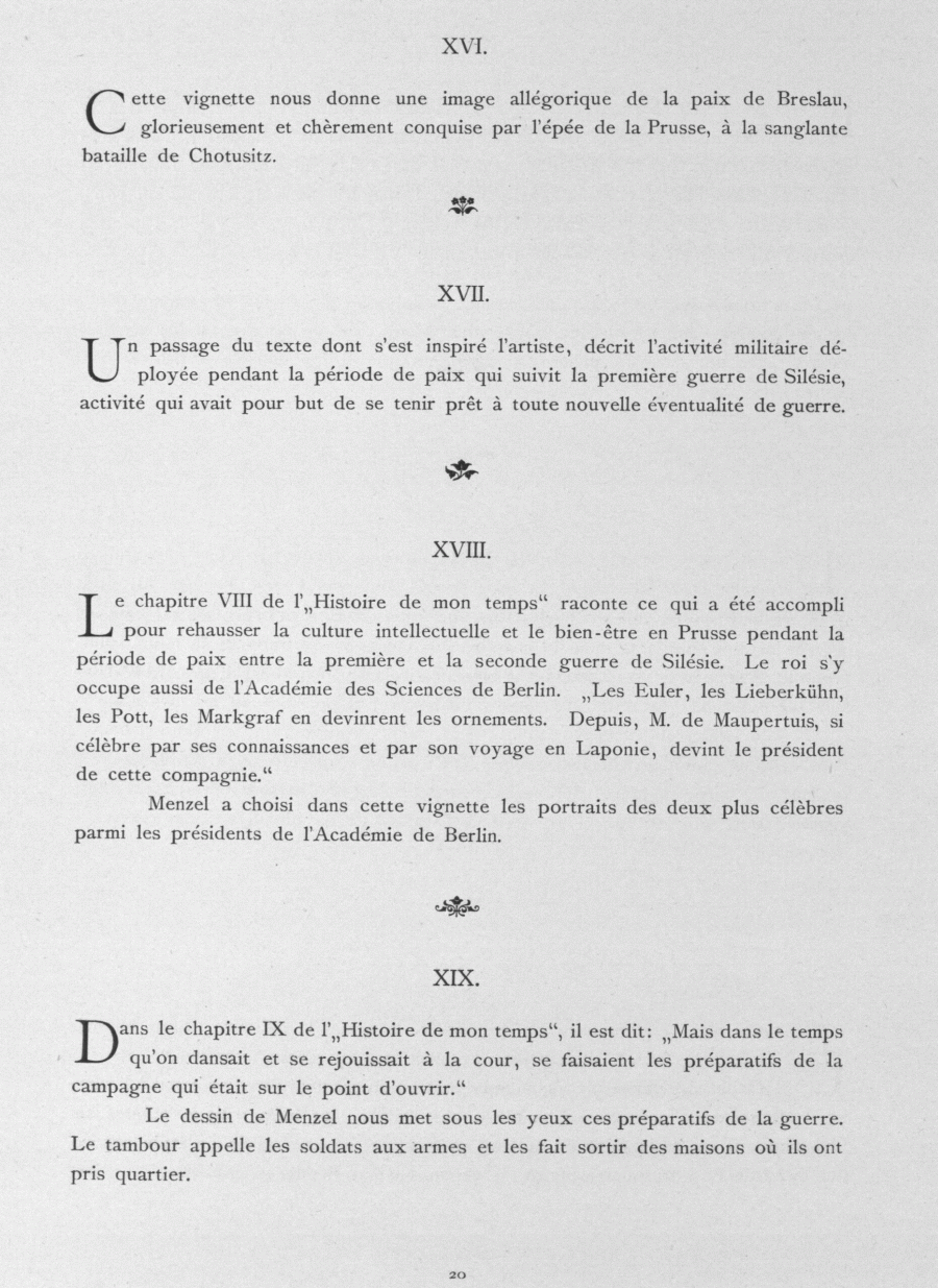 Un passage du texte dont s'est inspiré l'artiste, décrit l'activité militaire dé-ployée pendant la période de paix qui suivit la première guerre de Silésie, activité qui avait pour but de se tenir prêt à toute nouvelle éventualité de guerre.
