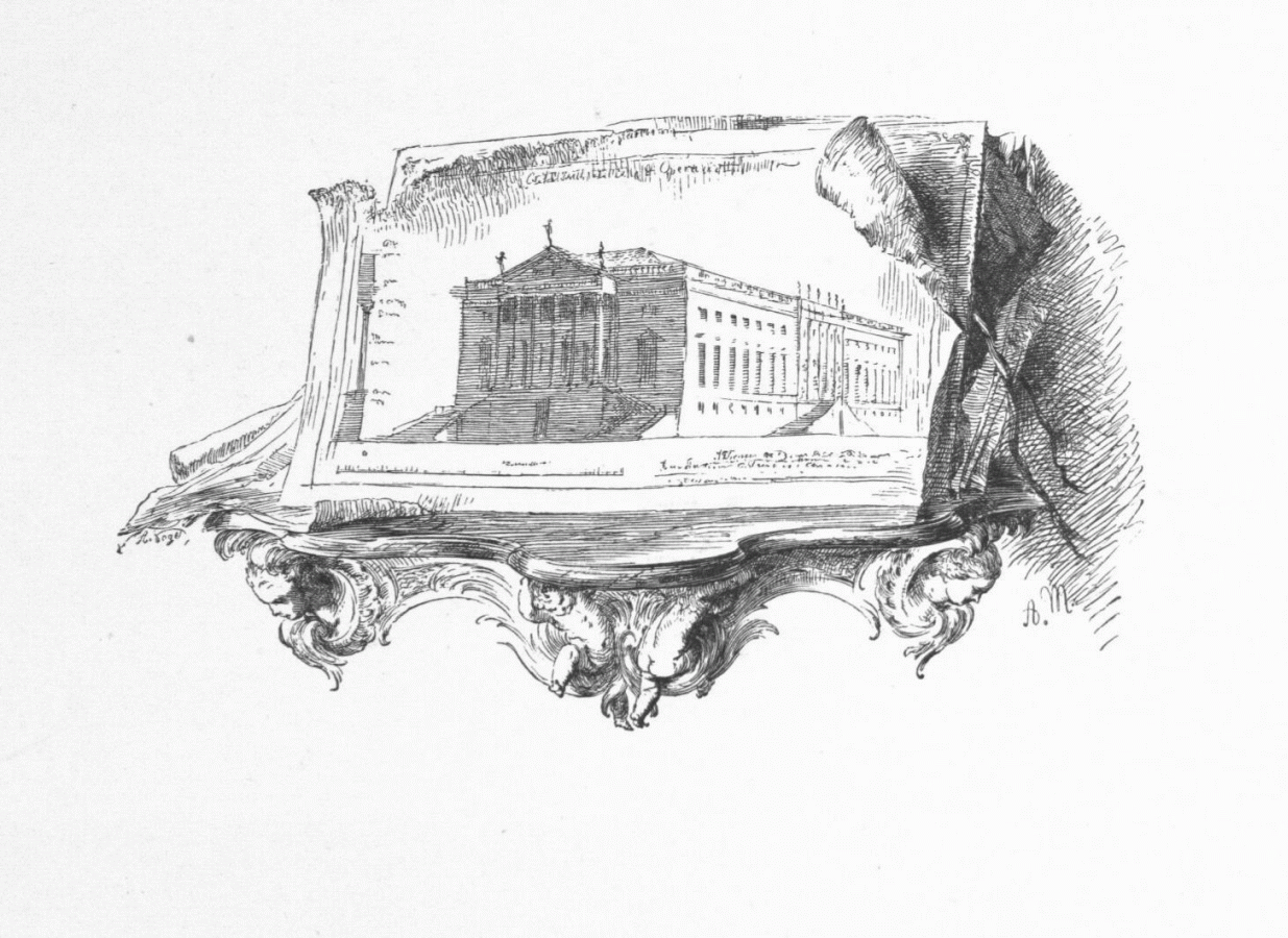 „Eloge de l'architecte baron de Knobelsdorff“. (Gravure d'A. Vogel.)