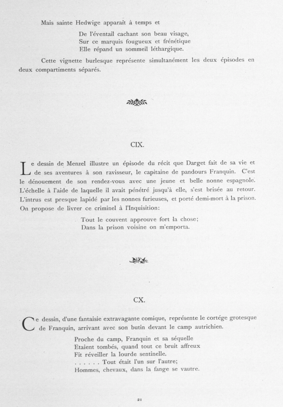 Le dessin de Menzel illustre un épisode du récit que Darget fait de sa vie et de ses aventures à son ravisseur, le capitaine de pandours Franquin. C'est le dénouement de son rendez-vous avec une jeune et belle nonne espagnole. L'échelle à l'aide de laquelle il avait pénétré jusqu'à elle, s'est brisée au retour. L'intrus est presque lapidé par les nonnes furieuses, et porté demi-mort à la prison. On propose de livrer ce criminel à l'Inquisition: