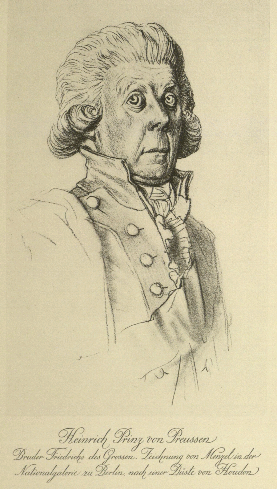 Henri, prince de Prusse, frère de Frédéric le Grand. Dessin au crayon de Menzel à la Galerie Nationale de Berlin, d'après un buste de Houdon