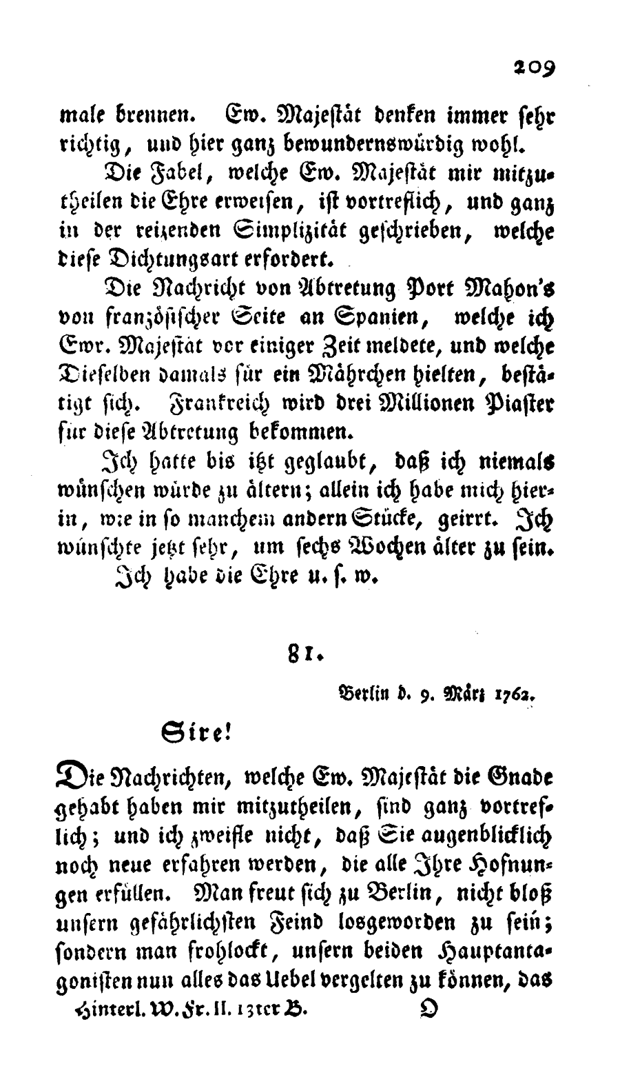 Berlin, d. 9. März 1762