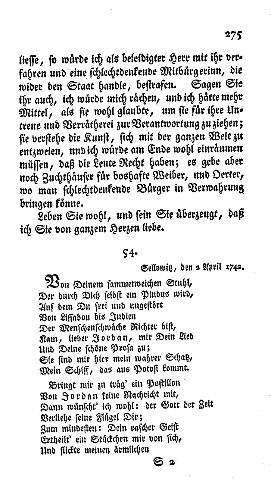 Sellowitz, den 2. April 1742