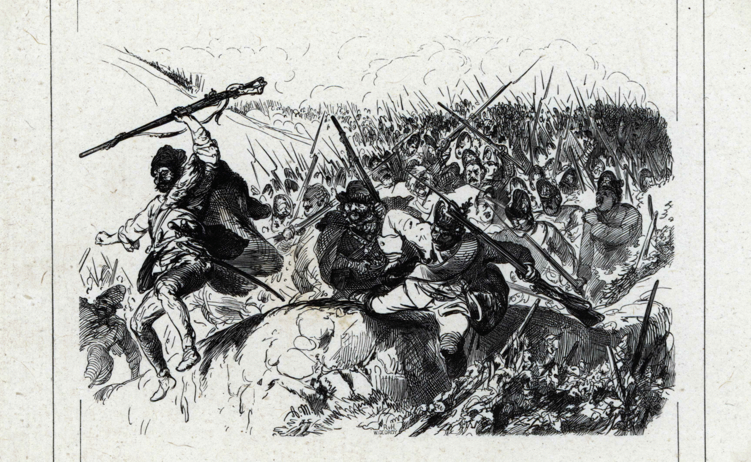 Des unités autrichiennes de fantassins fuient précipitamment.