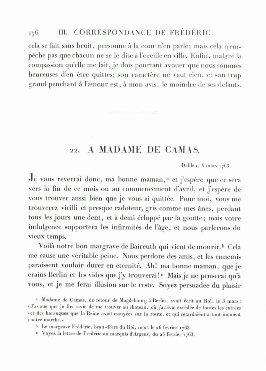 Frédéric à madame de Camas, Dahlen, 6 mars 1763Id: d385_ag509-18_004022000