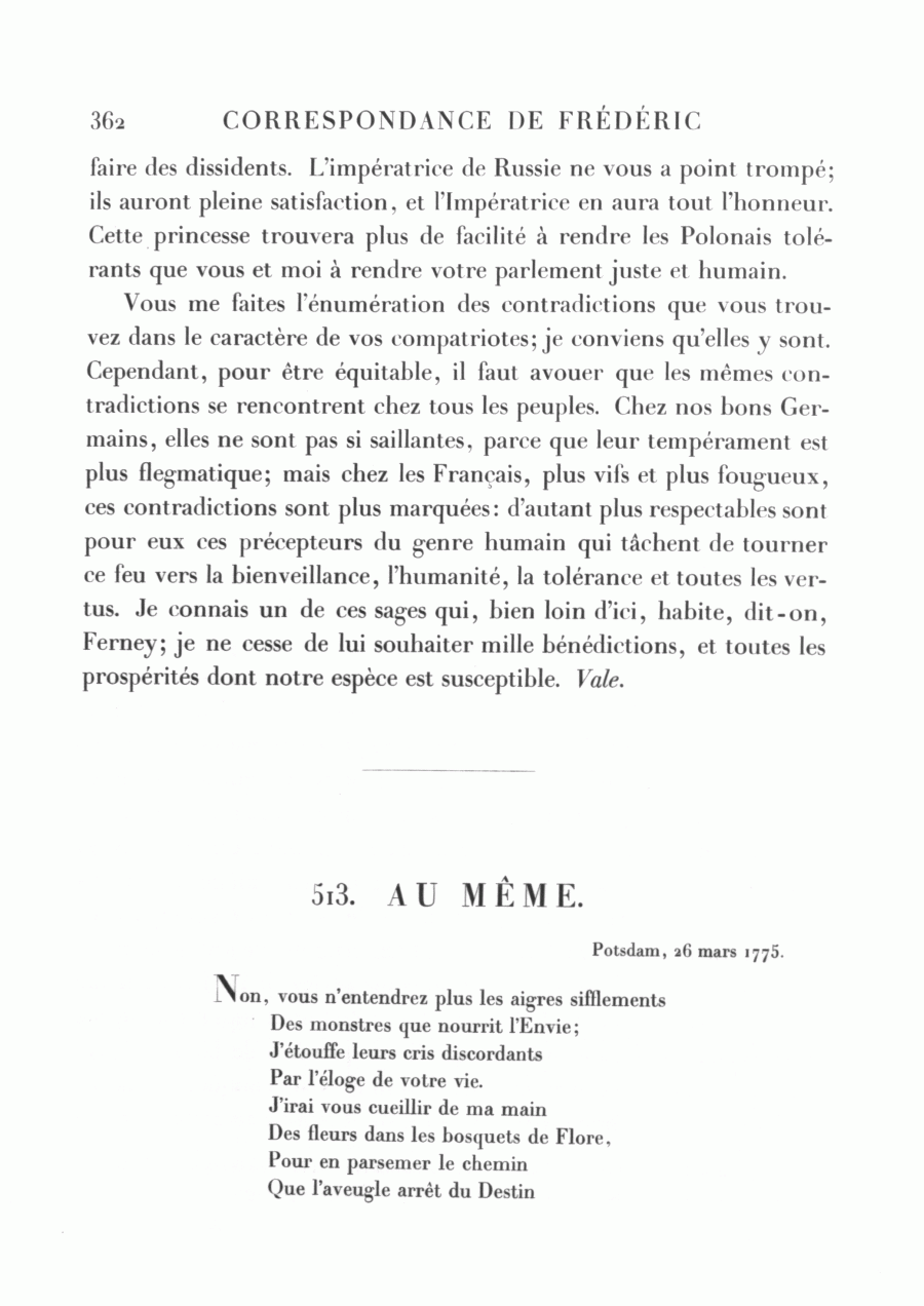Frédéric à Voltaire, Potsdam, 26 mars 1775Id: d385_ag509-23_001183000