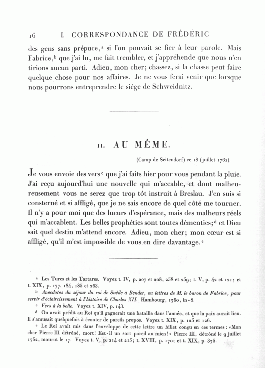 Frédéric à M. de Catt, (Camp de Seitendorf), ce 18 (juillet 1762)Id: d385_ag509-24_002011000