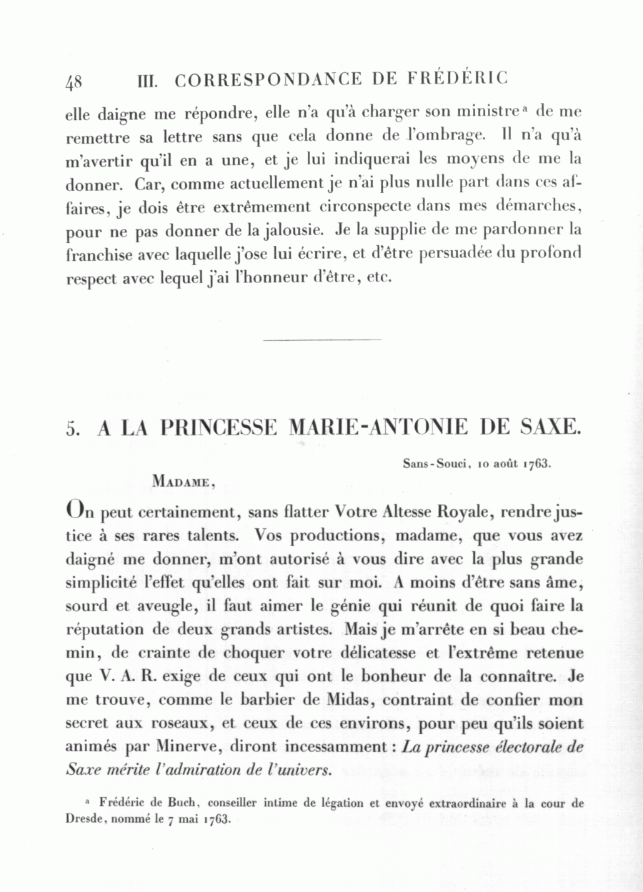 Correspondance de Frédéric avec l'eléctrice Marie-Antonie de Saxe