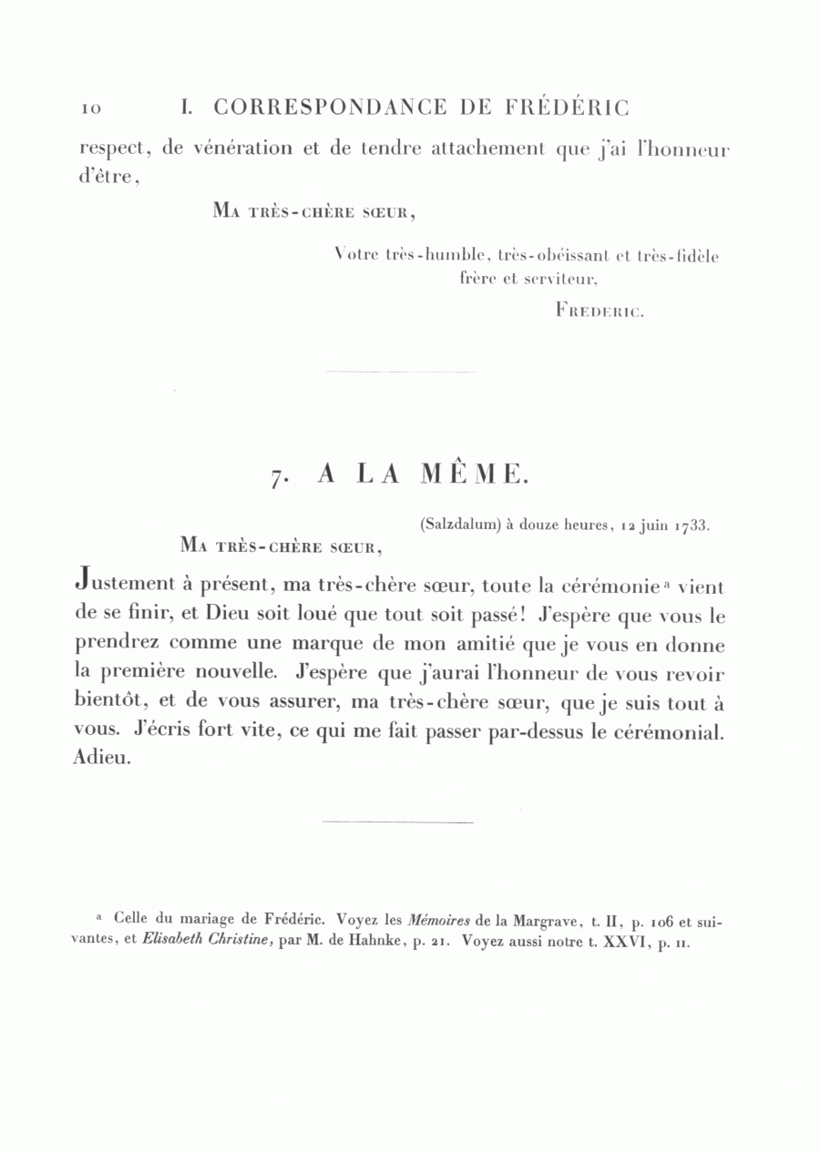 Correspondance de Frédéric avec sa sœur Wilhelmine, margrave de Baireuth