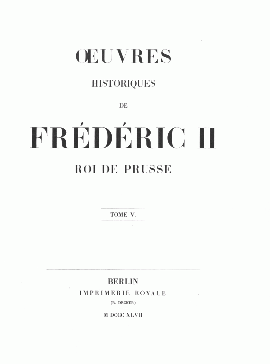 ŒUVRES HISTORIQUES DE FRÉDÉRIC II ROI DE PRUSSE TOME V.